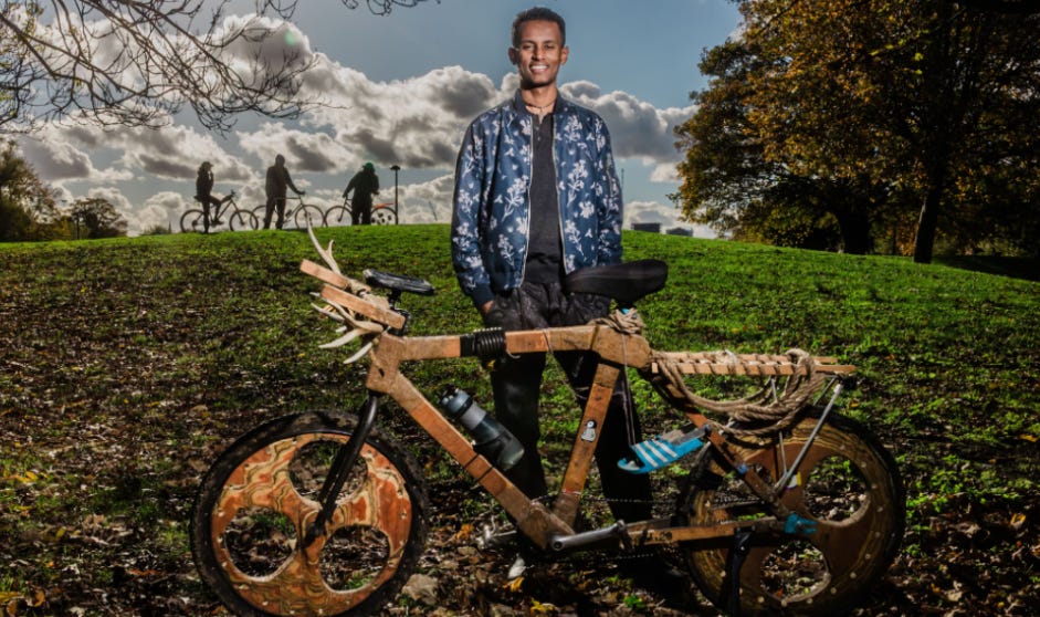 Un immigrant éthiopien traverse la Grande-Bretagne avec un vélo en bois !